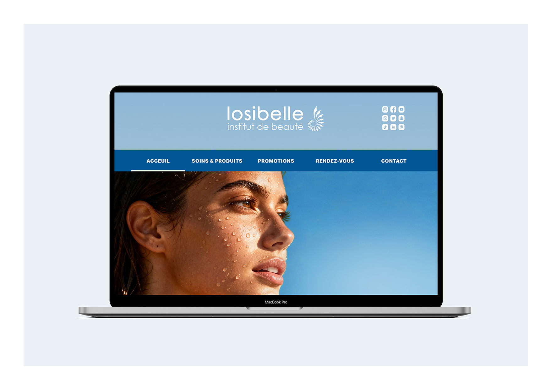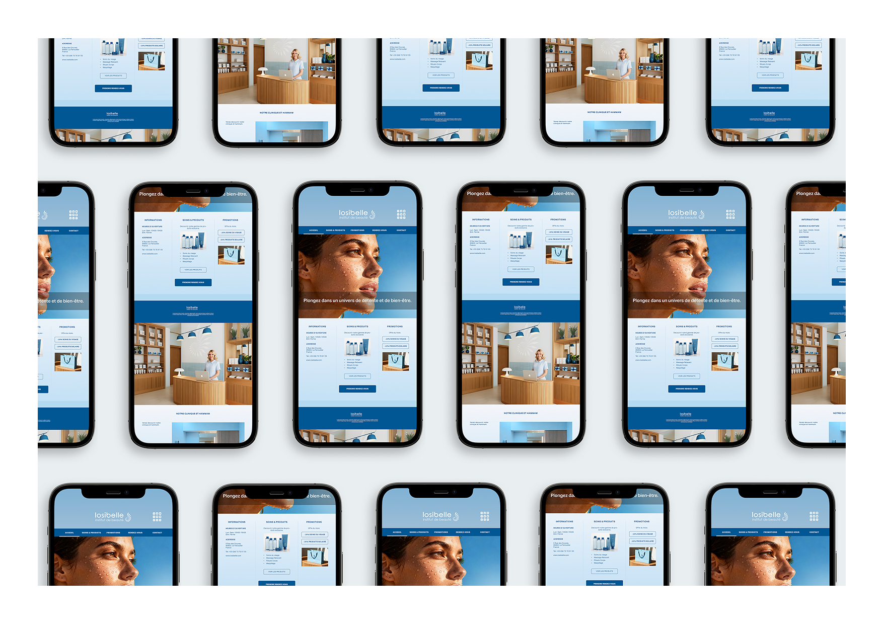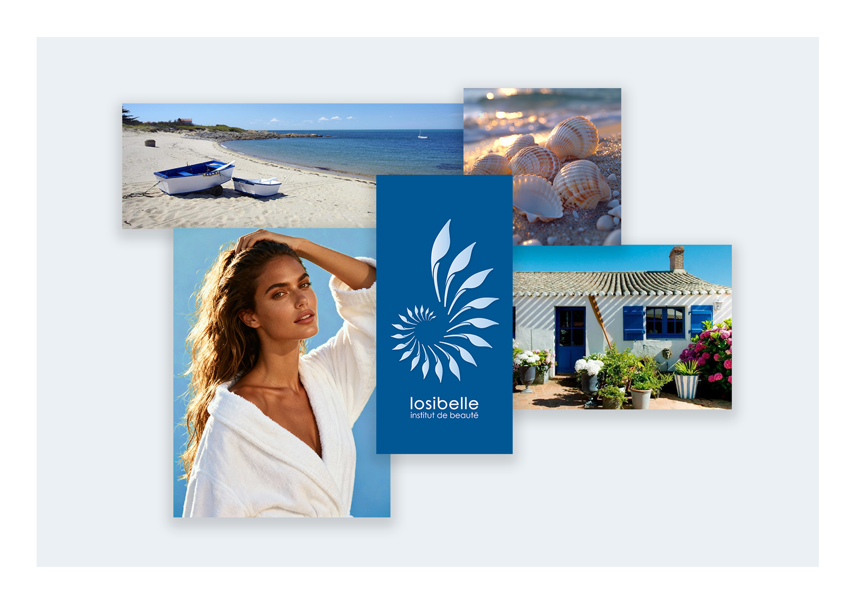 The brief received from Losibelle, a new women's only spa and beauty clinic located on the Atlantic coast of France, was to design a branding strategy that would be feminine, strong and reflect the beauty of the area.